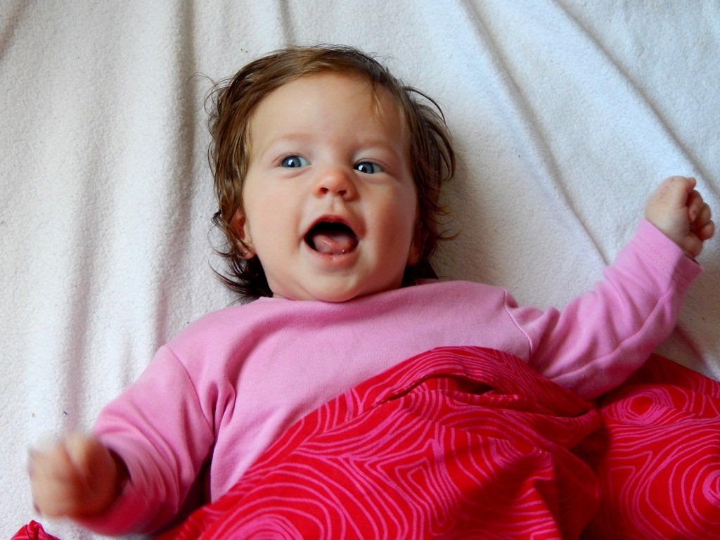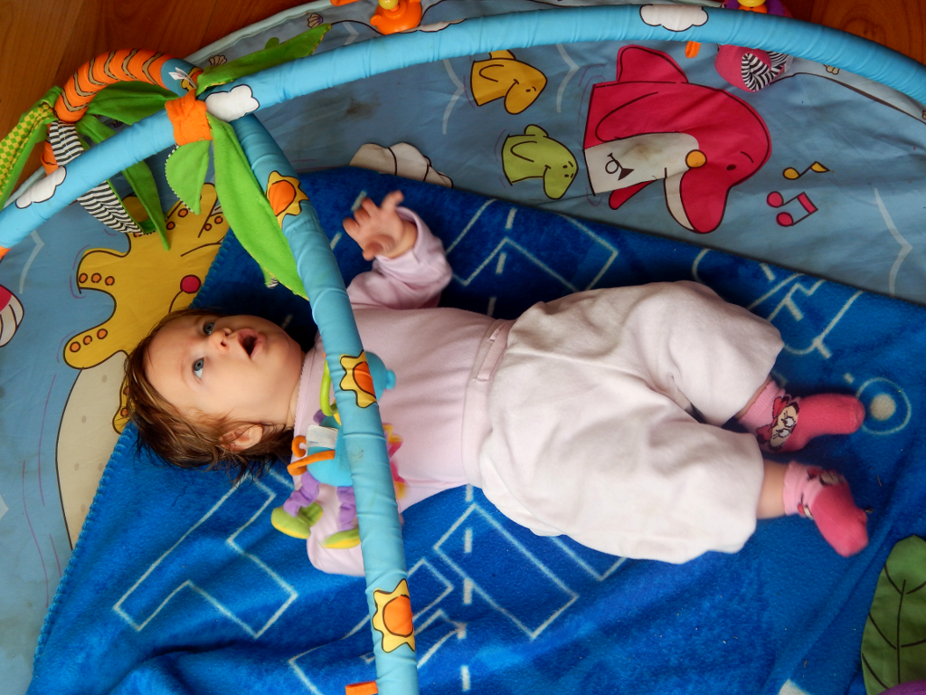 Pochwalę się też, że nauczyłam się łapać zabawki. Zresztą nie tylko zabawki. Chwytam wszystko, co znajduje się w zasięgu moich dłoni i co jest na tyle interesujące dla mnie w danej chwili, by poświęcić temu uwagę.