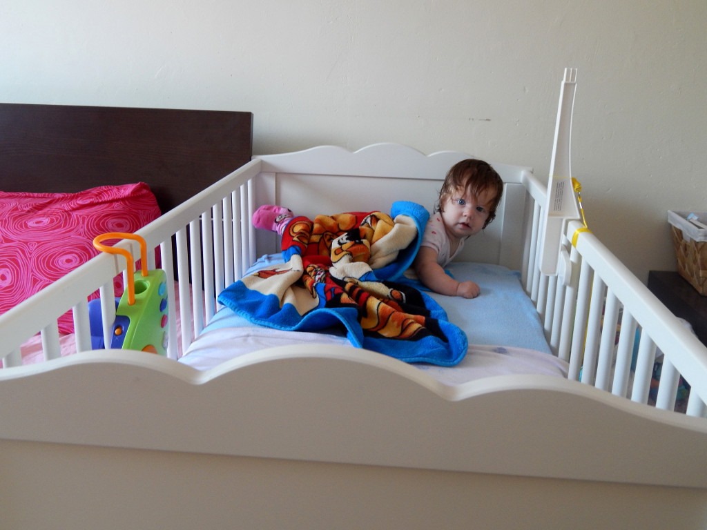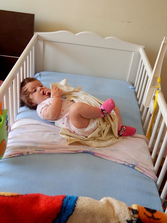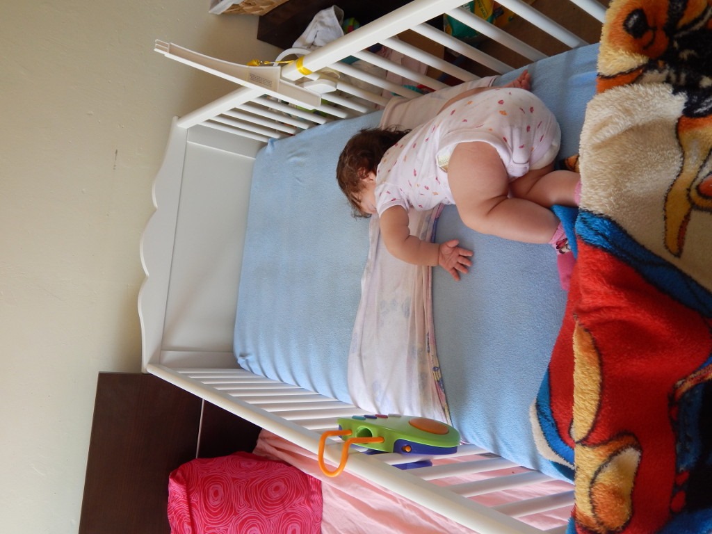 Za to łóżeczko to moje królestwo! Tu harcuję i brykam dowoli (najwięcej oczywiście jak mam iść spać). Kulam się na boki. Rodzice kładą mnie na brzuszku do snu, a ja, już za chwilę, leżę na plecach w drugim końcu łóżeczka, na dodatek poprzecznie. Takie figle potrafię wykonywać wielokrotnie. Oczywiście największej ochoty na ćwiczenia nabieram, gdy przychodzi czas na drzemkę.