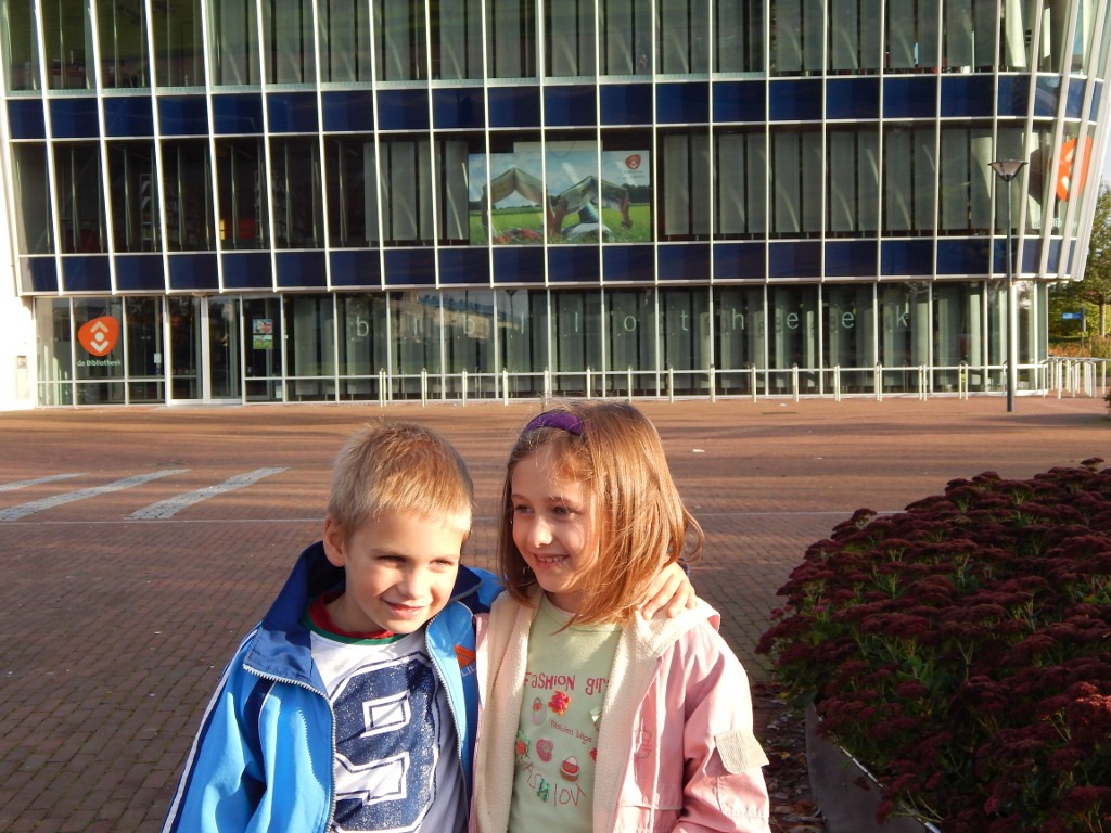 Już od dawna na naszej liście spraw do załatwienia, figurowała wyprawa do biblioteki. Sądziliśmy, że lektura prostych książek, przyczyni się do szybszego opanowania języka niderlandzkiego przez Iskierkę i Groszka. Może w bibliotece znajdziemy jakieś ciekawe audiobooki i filmy dla dzieci?