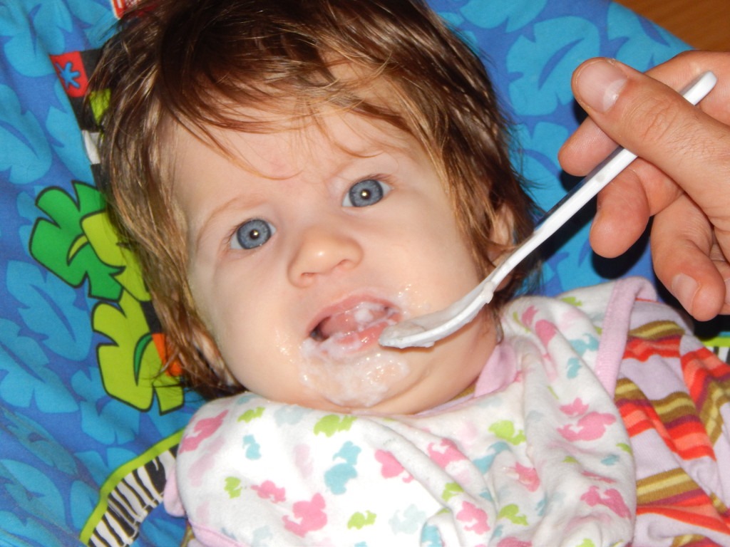 Pod koniec października mama posadziła mnie w leżaczku, nałożyła mi śliniak, uzbroiła się w różową łyżeczkę i miskę, z dziwną białą substancją, nawiasem mówiąc, wyglądającą podejrzanie.