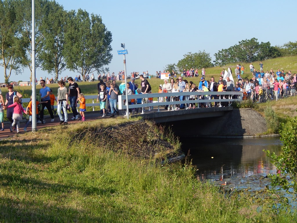 Ludzie rozmawiali, dzieci biegały radośnie wokół – nieświadome – że tym samym przemierzają znacznie więcej kilometrów niż pięć. Była okazja zamienienia słów z innymi rodzicami, oraz z nauczycielami… Szliśmy pięknymi uliczkami naszego miasteczka aż do centrum. Mogłam zwiedzić nieznane dotąd zakątki. Ponownie zachwyciłam się mnóstwem kanałów i, nie po raz pierwszy, zadziwiłam obecnością kaczek, gęsi, owiec, kóz pasących się na łąkach przy głównych ulicach… Holandia w pigułce. Współistnienie ludzi i zwierząt, życie blisko natury.