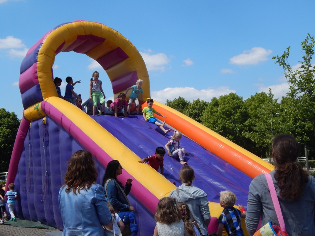 Atrakcje zaplanowano od godz. 12 do 17, wszystkie za darmo. Gdy dzieci wróciły ze szkoły, zjedliśmy obiad i wyruszyliśmy do pobliskiego parku. Już z daleka widniała duża dmuchana zjeżdżalnia i zamki do skakania.