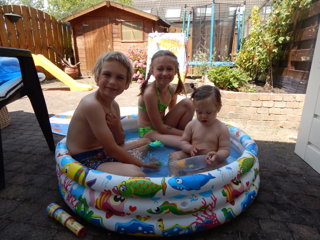A dziś po południu dzieci chłodziły się w ogródku, bawiąc się w małym baseniku. I choć rzeczywiście jest on niewielkich rozmiarów, to zmieściła się w nim cała trójka i nie było przy tym żadnej kłótni, lecz zgodna zabawa.