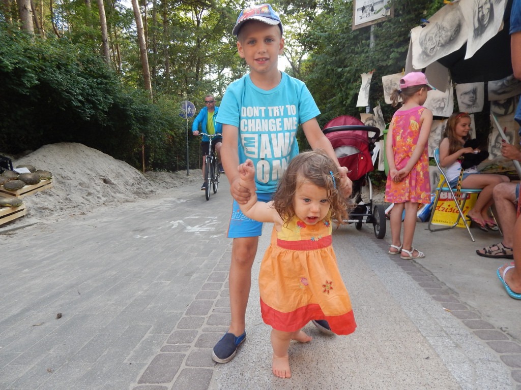 Okruszek jak widać najbardziej absorbujący, jak to dzieciątko w tym wieku. Pamiętam nasze kryzysowe wakacje, gdy Domi miała 2 latka i 3 miesiące. Zaczął się etap uciekania, musieliśmy jeść na zmianę w naszej ulubionej naleśnikarni, bo spuszczona na chwilę z oczu, uciekała do wyjścia, które prowadziło na ruchliwą ulicę. Musieliśmy jeść na zmianę i pilnować, a raz byliśmy już strasznie głodni i chcieliśmy zjeść razem. Wtedy Dominisia siedziała przypięta pasami w wózku, obrażona na cały świat i niedobrych rodziców. 😉 Kochana, teraz na pewno jesteś zmęczona, ale sama dobrze wiesz, że ten czas minie i za kilka lat będziesz wspominać te chwile z uśmiechem. 😉