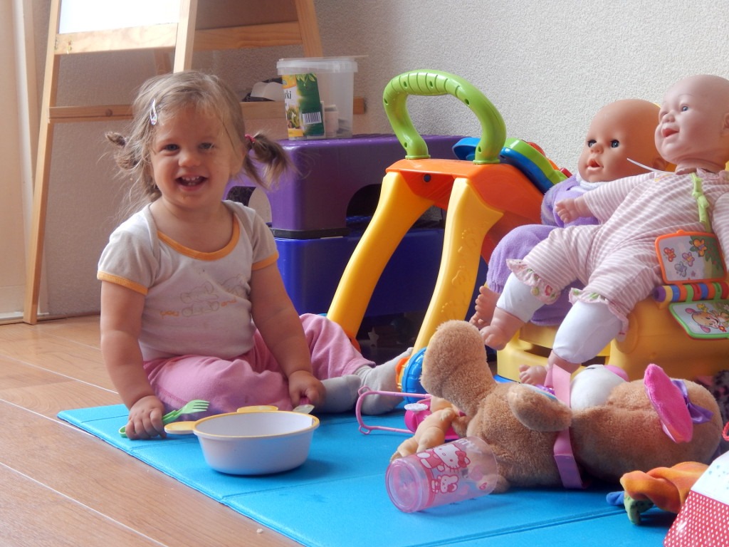 Poza tym uwielbiam bawić się lalkami. Żadną nie pogardzę: małą, większą, chudą, grubą, z włosami czy bez … Moja siostra ma lalek bez liku, ale najbliższe są mi bobasy. Karmię je chrupkami, układam do snu, noszę, tulę. Cóż, jestem mądrą, małą dziewczynką! W końcu mam już 16 miesięcy. I chyba na tym zakończę moją notatkę w pamiętniku…