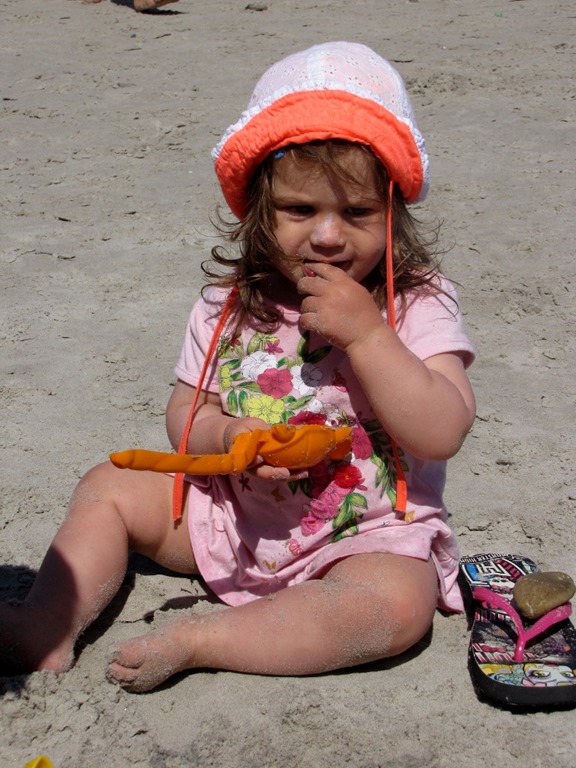 Mały łobuziak :)) Pamiętam jak mój syn pierwszy raz był na plaży. Pełen zachwyt! Taaaaka duża piaskownica!!! Nie wiadomo, gdzie usiąść, gdzie grzebać, gdzie wzrokiem podążyć 🙂 I tak, też trochę tej plaży zjadł 😀