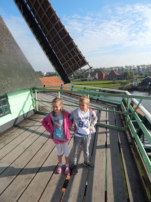 Dzieci nudzi mój wykład, chcą zwiedzać. Wchodzimy więc do młyna „Kot”. To jedyny wiatrak na świecie, który mieli pigment na farbę i barwniki. Z jego górnej części roztacza się piękna panorama na inne młyny.