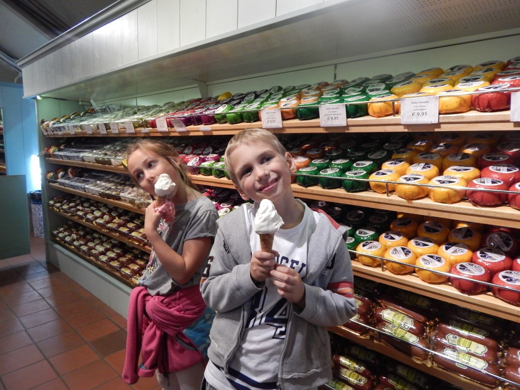 Natomiast w innej zagrodzie jest okazja, by przyjrzeć się tradycyjnej produkcji sera, po czym dostać oczopląsu od mnogości różnych gatunków tego smakołyku na półkach w sklepie z serami „Catharina Hoeve”.