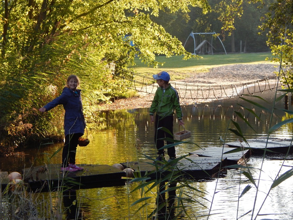 Tego dnia, szukając skarbów jesieni, zaliczyliśmy naprawdę ładną i długą trasę pieszo, jednak zaabsorbowane dzieci ani razu nie wyraziły chęci powrotu nim koszyki się nie zapełniły.