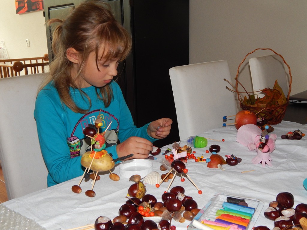 Prawdziwe czary – mary! Cudownie jest tworzyć ludziki i zwierzątka z naturalnych materiałów. Przyznam, że i ja bawiłam się równie dobrze jak dzieci. Znów mogłam poczuć się małą dziewczynką, powrócić do czasów dzieciństwa, gdy co roku w szkole na technice robiło się kasztanowe ludziki, aż do znudzenia. Ale mi się to jakoś nigdy nie nudziło. Ten proces przemiany kilku kasztanów i żołędzi w śmieszne stworki wypełnia serce radością i lekkością. Można zapomnieć o swoich troskach, zresetować zmęczony codziennością umysł.