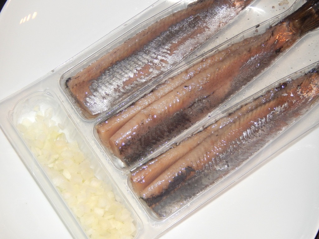 Na kolację natomiast zaserwowałam równie popularnego w Holandii śledzika z siekaną cebulą. Nie musiałam go przyrządzać. Gotowe pakiety można tu kupić w każdym sklepie.