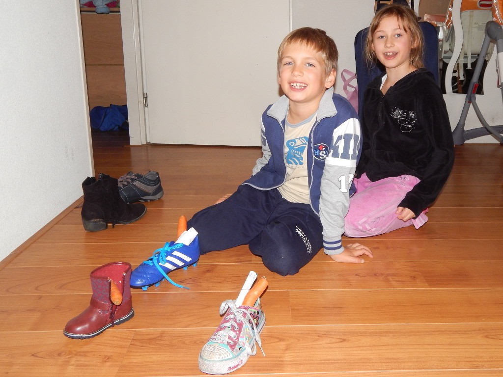 Nie zapominają o siwym koniu, marchewka jest właśnie dla Schimmela! A gdy buty są przygotowane, codziennie wieczorem dzieciaki odprawiają nad nimi rytuał śpiewania piosenki o Sinterklaas i Zwarte Piet.