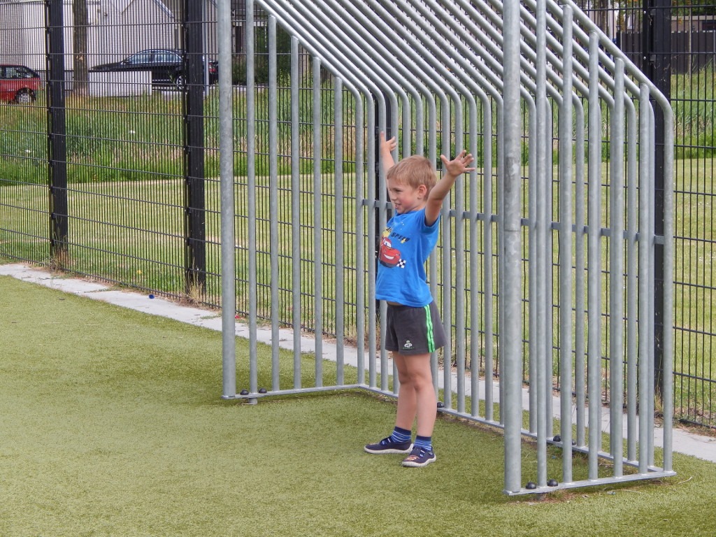 Po powrocie ze szkoły, Groszek często siadał w oknie i obserwował boisko, na którym zawsze ktoś grał w piłkę nożną, najczęściej chłopcy mniej więcej w jego wieku. Mama zachęcała synka, by wyszedł z domu i dołączył do rówieśników. Chłopczyk jednak nie miał odwagi, przecież nie znał języka niderlandzkiego… A polskiego tutejsi mieszkańcy nie rozumieli. Jednak w sercu chłopca wzbierała wielka ochota, by samemu też zagrać w piłkę. I z każdym dniem ta chęć rosła i rosła… Aż w końcu nadszedł dzień, gdy nasz mały bohater wyszedł na boisko. Kopnął piłkę i… to było to! Pokochał futbol. Znalazł tę swoją ulubioną dyscyplinę sportu. Rodzice kupili mu korki, strój piłkarski i odtąd Groszek codziennie meldował się na boisku. Nie odpuszczał nawet, gdy siąpił deszcz…