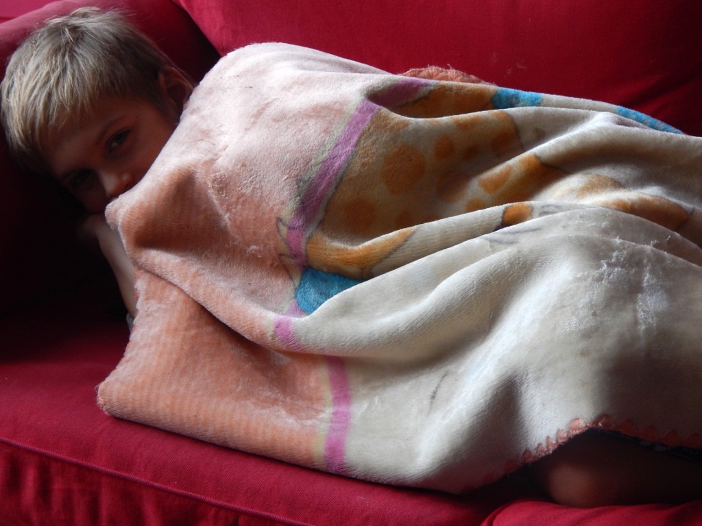 O, a teraz w końcu poszedł się położyć, jak przystało na prawdziwie przeziębionego siedmiolatka! Tak się składa, że w tym czasie Okruszek też odbywa swoją południową drzemkę…