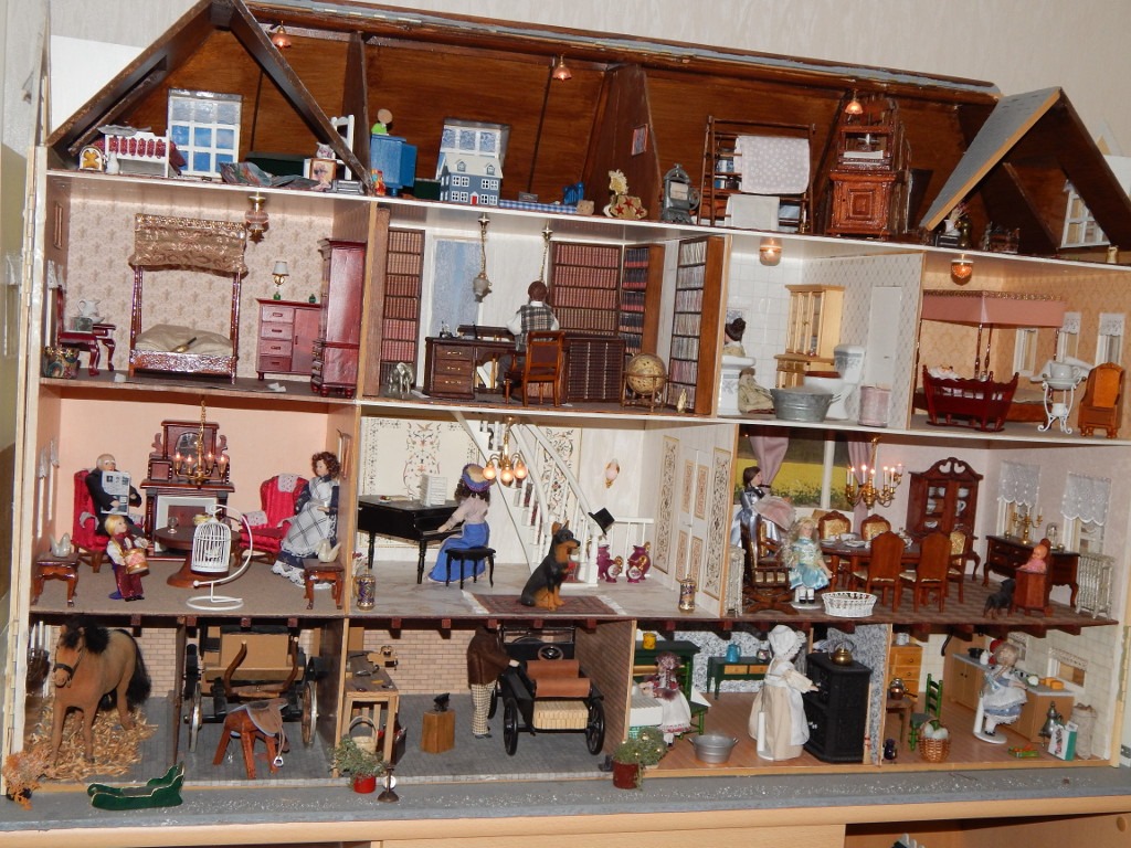 Pozazdrościć takich sąsiadów! Nigdy nie wiedziałam, że drewniany domek dla lalek z mebelkami może być tak perfekcyjnie wykończony. Widać, że ktoś włożył w to dużo serca i ciężkiej pracy 🙂 Sama pewnie, gdybym tam weszła, nie mogłabym wyjść przez co najmniej kilka dni.