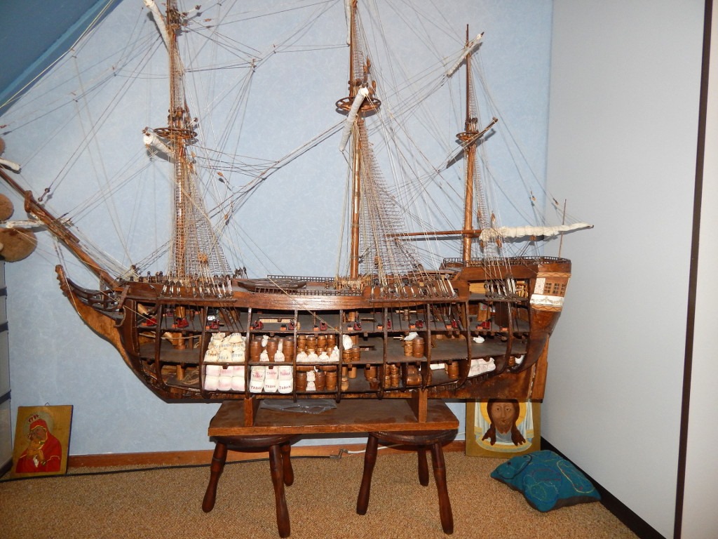 -Mamo, widziałem wielki statek! Starszy pan sam go zrobił!
