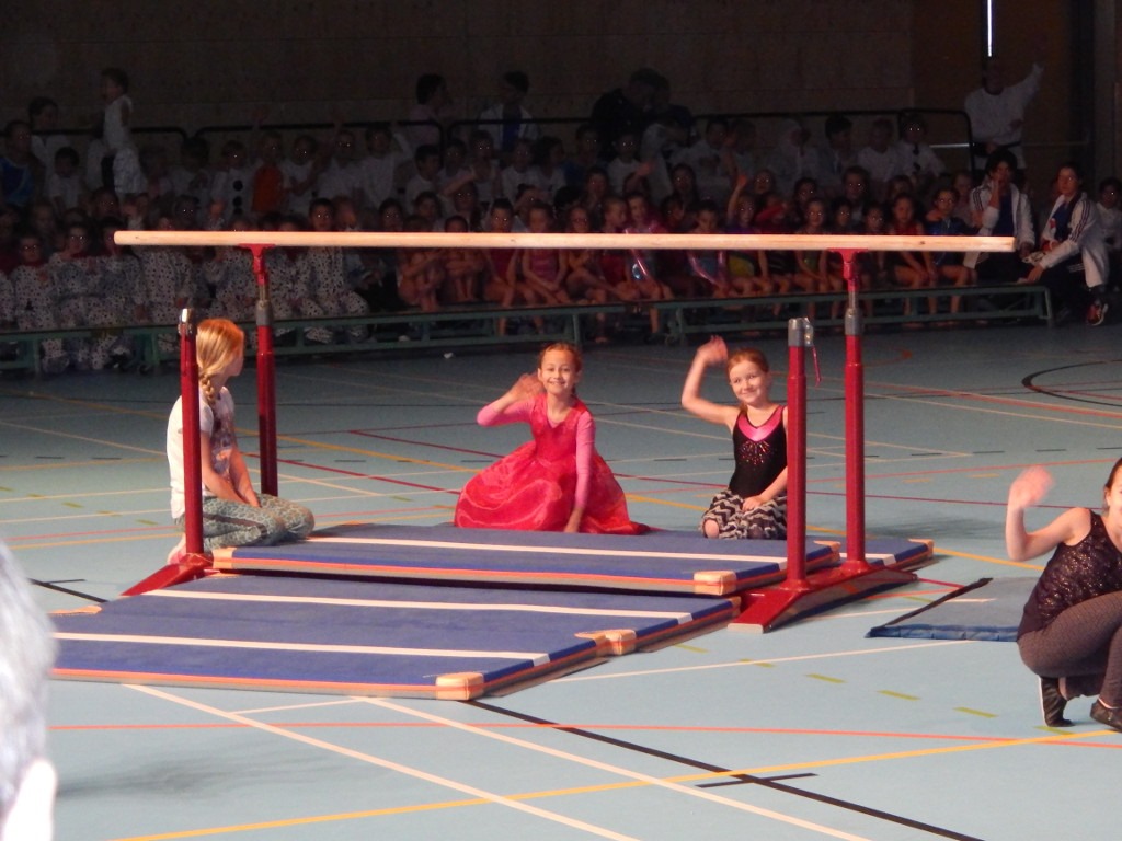 W sumie, w dużym skrócie zdradzę, że zainspirowała mnie starsza siostra! Czasem rodzeństwo się przydaje, prawda? Opowiem wam, jak to dokładnie było. Iskierka chyba pozazdrościła mi sprawności fizycznej i dobrej formy, bo jakieś dwa miesiące temu poinformowała mamę, że w środy po lekcjach, w sali gimnastycznej, odbywają się zajęcia z gimnastyki dla dziewczynek zwane „turnen”. Brała w nich udział jej koleżanka z klasy i Iskra też chciała. No i poszliśmy na próbne zajęcia sprawdzić, czy po pierwszym treningu mojej siostrzyczce zapał nie minie. Dziewczynki ćwiczyły stanie na rękach, przewroty w bok, skakanie przez kozła… O dziwo, siostra nie przelękła się tych akrobacji! Ba, nabrała ochoty na więcej! Odtąd, w każdą środę, Iskierka chodzi na zajęcia gimnastyczne. Natomiast w ostatni weekend, miała występy na wielkiej hali sportowej. To była impreza pod hasłem baśni Disneya; rodzice nawet bilety musieli kupić, by popatrzeć na córkę. No właśnie… Grupa Iskierki w sportowym stylu zaprezentowała bajkę o „Kopciuszku”, mojej siostrze trafiła się nawet główna rola.