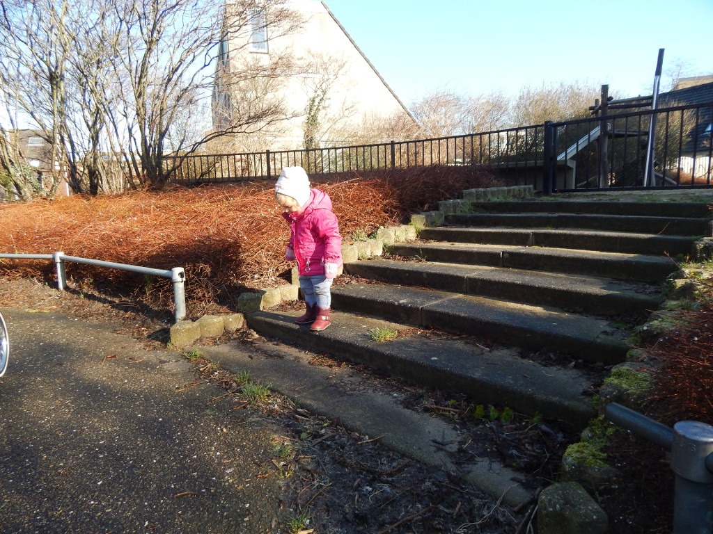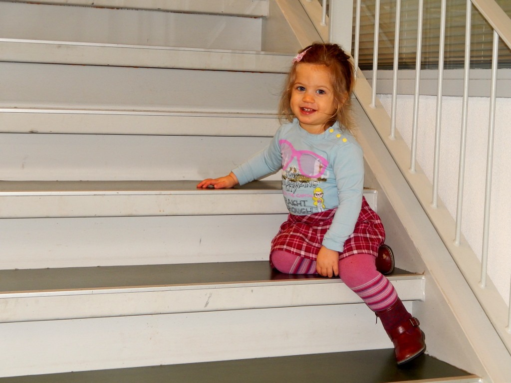 Moja najmłodsza córeczka właśnie nauczyła się wchodzić i schodzić po schodach.