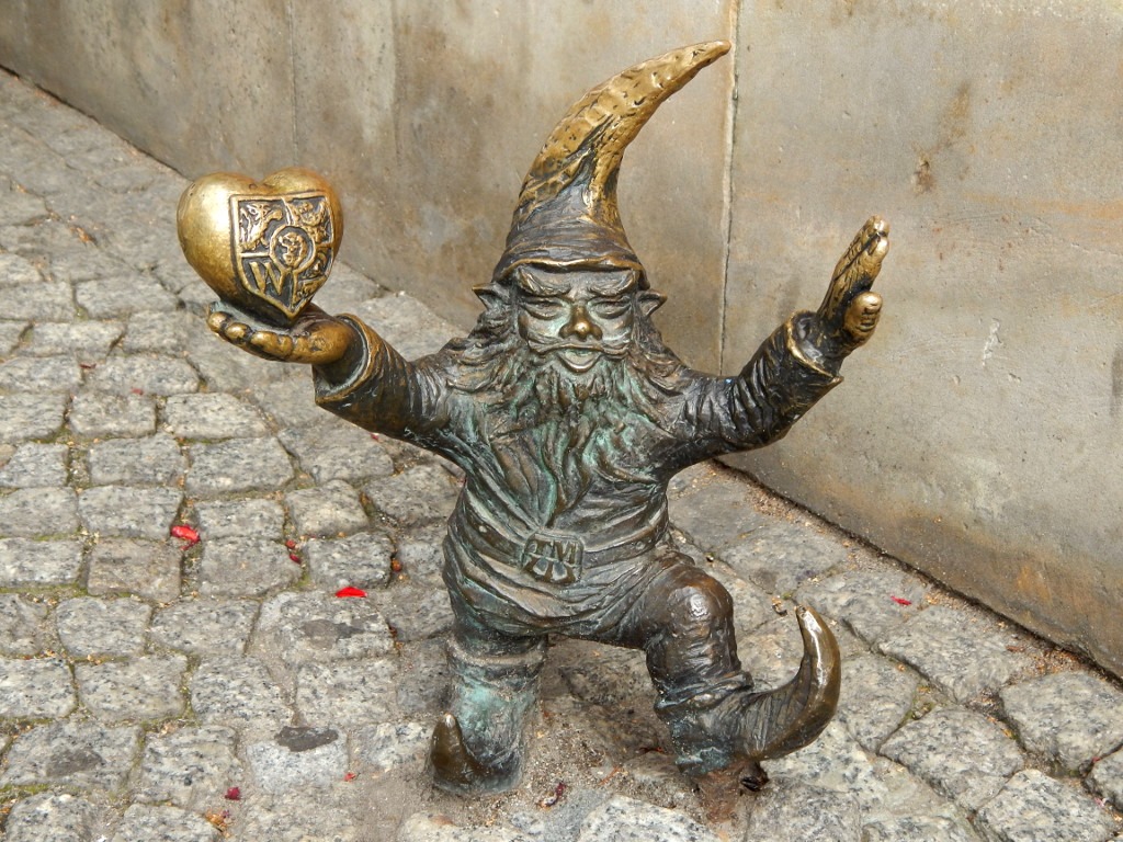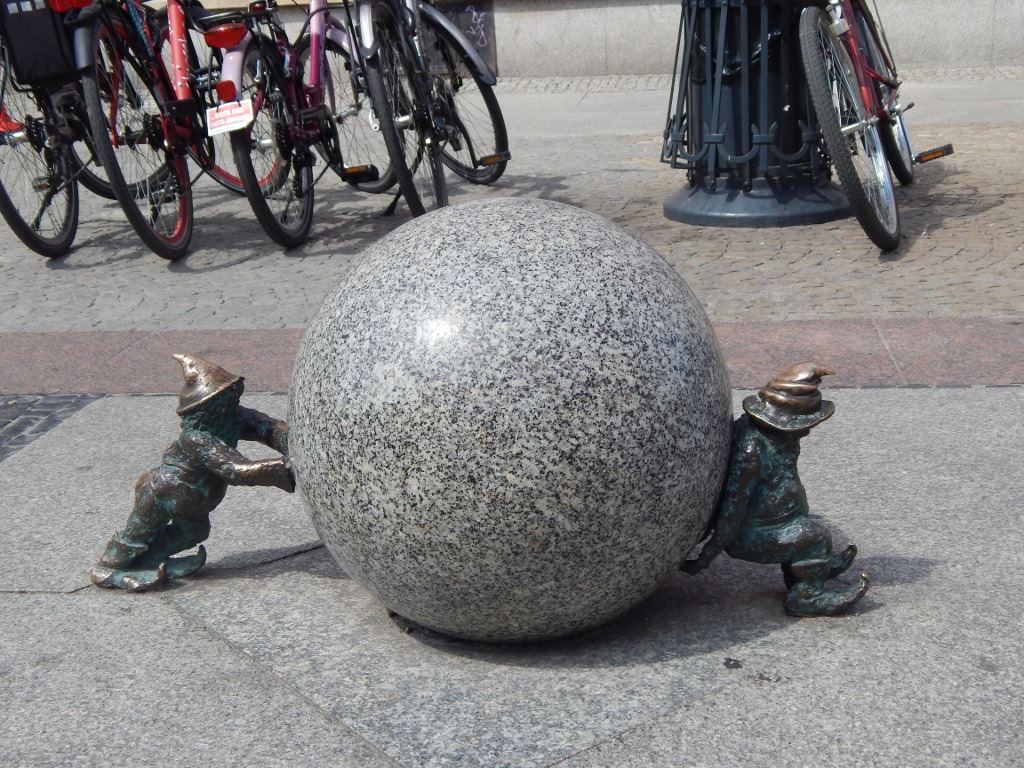 Pamiętam, że upał był wtedy niemożliwy, słońce odbijało się w chodniku, asfalt parował, a wrocławianie i turyści leniwie snuli się po mieście szukając choćby skrawka cienia. Krasnoludkom, odzianym w ciepłe czapki, niełatwo było znosić upał i nieustanne pozowanie do zdjęć. Biedactwa nie mogły odpocząć od gorąca. Dzień w dzień, w pogodę i w niepogodę, muszą dzielnie tkwić w wyznaczonych dla nich miejscach i już.