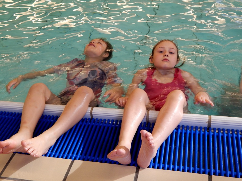 Pierwsze lekcje odbywały się w płytkiej wodzie, dzieciaki głównie oswajały się z nią i uczyły przezwyciężyć strach przed zanurzaniem głowy.