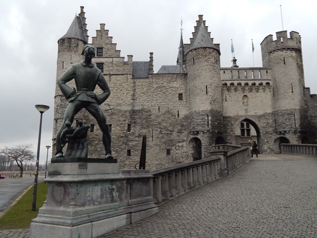 W tym oto miejscu wybudowano miasto Antwerpia („hand werpen” oznacza po niderlandzku „rzucać dłoń”).