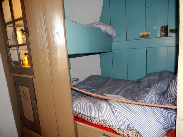 Naszą uwagę przyciągnęły też zabudowane łoża, a zwłaszcza – małe łóżeczko umieszczone nad „nogami” posłania rodziców.