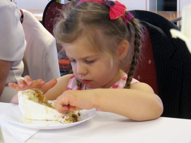 Wystarczy chwila maminej nieuwagi (o którą nietrudno przy dużej liczbie osób) i… hop – właśnie kolejne ciastko wylądowało w buzi Okruszka!