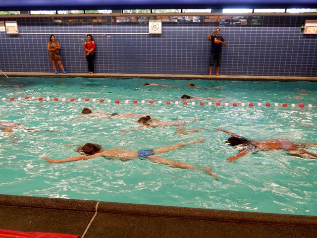 Zazdroszczę zwyczaju nie pływania w czepkach i podziwiam umiejętność pływania w ubraniach! Gratulacje dla dzieciaków 🙂