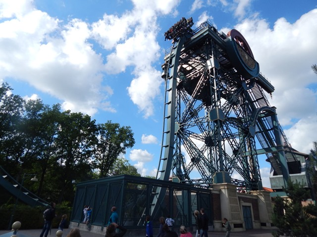 Osiągnąwszy wysokość 30 metrów nasz wagon zatrzymuje się i odchyla pod kątem 45 stopni, co daje efekt „zawiśnięcia” nad ziemią.