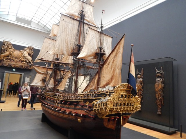 Na drugim piętrze Rijksmuseum znajduje się również duży model statku z czasów podbojów i wypraw militarnych Holendrów.