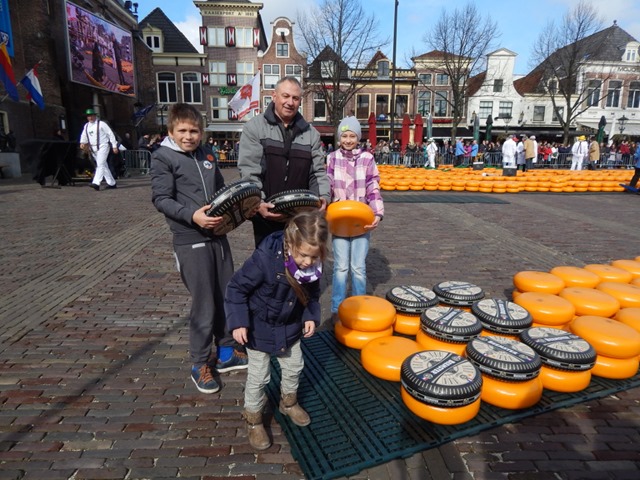 Wiesz, mimo że mieszkamy w Holandii dokładnie cztery lata, dopiero teraz udało nam się uczestniczyć w tym serowym pokazie. Normalnie w piątek dzieciaki są w szkole, mąż w pracy. Teraz wykorzystaliśmy moment, że był Wielki Piątek i zarówno dzieci jak i mężulo mieli wolne. Odwiedziny dziadków z Polski dodatkowo nas zmobilizowały, by ruszyć się z domu i coś zobaczyć.