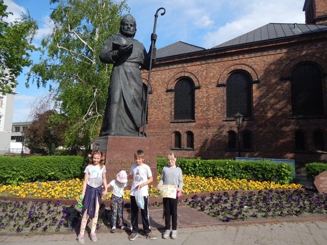 Na tym zwiedzanie zmuszeni byliśmy zakończyć. Nawet starsze dzieci stwierdziły, że teraz to już tylko lody, pamiątki i ewentualnie plac zabaw gotowi są zaakceptować. Tak też więc uczyniliśmy. Spacer ulicą Tumską z porcją lodów (dla dzieci) i kawą (dla dorosłych), dalej wizyta na okrągłym rynku, wreszcie dłuższy spacer w stronę ziemi obiecanej. Po drodze jeszcze jeden kościół, jeszcze jeden pomnik – już ze zniecierpliwieniem na twarzy i uśmiechem nieco wymuszonym. Ale tu na cokole św. Wojciech stoi, jakże więc tak przejść obok, bez choćby jednej fotki?