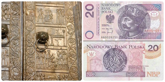 Po podziemiach zdecydowaliśmy się obejrzeć Drzwi Gnieźnieńskie. Wspaniały zabytek sztuki romańskiej. Jeśli wierzyć przewodniczce: lewą stronę starannie wykonał mistrz, prawą – bez podobnej dbałości i biegłości, jego uczniowie. A to kołatka się oberwała, a to fragment dosztukować trzeba było, bo się „omskło”. Ile w tym prawdy – nie wiem. Ważne, że nasza trójca słuchała z zafascynowaniem i sądzę, że siłą rzeczy w pamięci zostało nieco szczegółów. Rzecz, na którą wcześniej nie zwróciłbym uwagi to sam fakt, że jak na tamte czasy jest to dzieło nietypowe: miast wizualizować żywoty postaci biblijnych (powszechna praktyka w wiekach średnich), drzwi przedstawiają żywot św. Wojciecha. I znów, nie obyło się bez prezentacji banknotu – tym razem dwudziestozłotowego. Z jednej strony znajdziemy na nim wizerunek lwa, z drugiej – drzewa, które wyrosło w miejscu wystawienia zwłok świętego.
