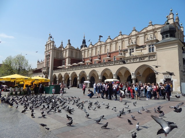 Następny etap wędrówki to Rynek Główny w Krakowie – z Sukiennicami, fragmentem Ratusza oraz Bazyliką Mariacką. Chcąc, nie chcąc poznajemy historię Sukiennic: poszczególne etapy budowy, uszkodzenia wynikające z rozmaitych klęsk… Na koniec, główna atrakcja tej sali (przynajmniej z punktu widzenia dzieci) – możemy spróbować swoich sił w swoistej wariacji na temat „Guitar Hero” – zamiast przebojów rocka mamy Hejnał, zamiast gitary – trąbkę, ale pozostałe zasady są zbliżone. Głównie wychodzi nam kakofonia, ale zabawy jest przy tym po pachy!