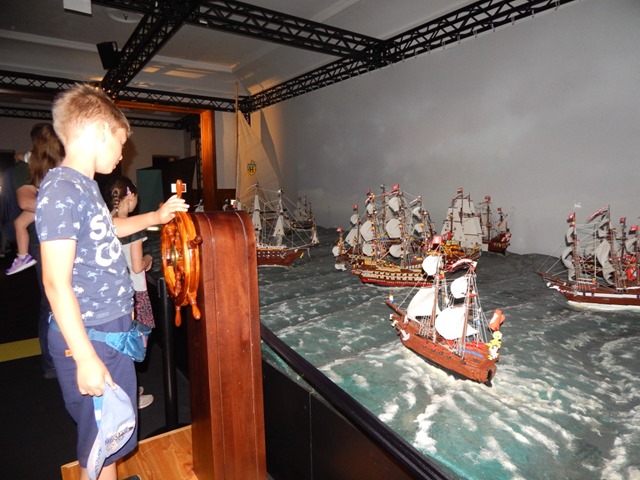 Z Krakowa wybieramy się w inny czas, inne miejsce. Oto przed nami największy triumf polskiej floty: Bitwa pod Oliwą. Jako dziecko czytałem książkę poświęconą tej bitwie i choć w pamięci pozostało niewiele szczegółów, to interaktywna wystawa szybko pamięć przywraca. Razem z dziećmi dowiaduję się ponownie o tym, jak duma i pewność siebie może przynieść klęskę tam, gdzie zwycięstwo wydawać się mogło czymś gwarantowanym. Cenna lekcja dla ludzkości zarówno w siedemnastym, jak i dwudziestym pierwszym wieku.