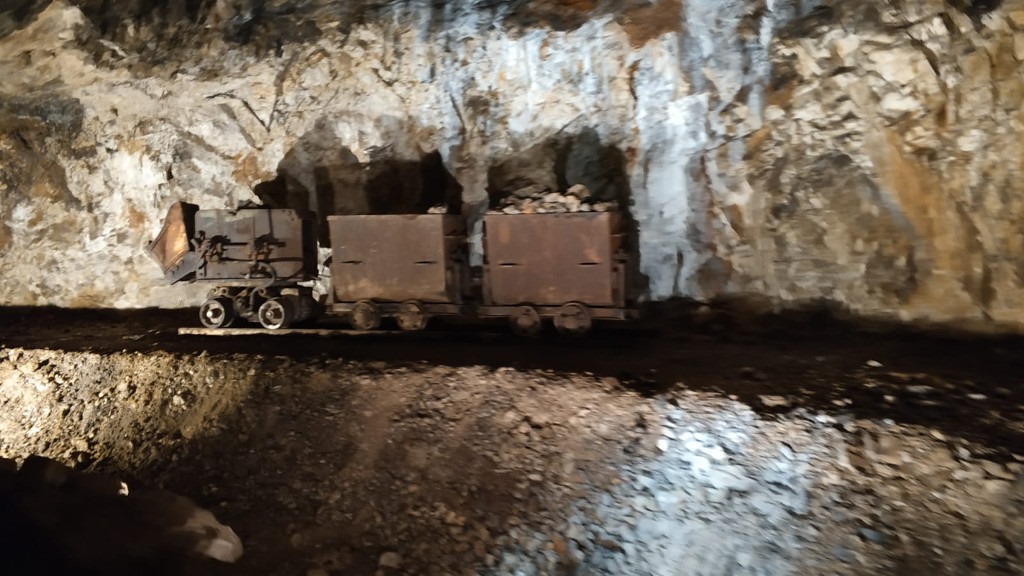 Większość trasy wiodła przez kopalnię minerałów (w tym marmuru), w której podziwiać można było różne narzędzia górnicze. W pewnym momencie wagoniki zatrzymały się a z głośników popłynęły słowa poezji poświęconej górnikom i ich niełatwemu życiu oraz tragicznym śmierciom na stanowiskach pracy.