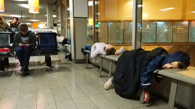 Zaspani, w środku nocy, wróciliśmy na lotnisko, do hali odlotów. Czekając na nie wiadomo co siedzieliśmy tam do rana, a potem jeszcze do popołudnia. Ależ byliśmy zmęczeni!