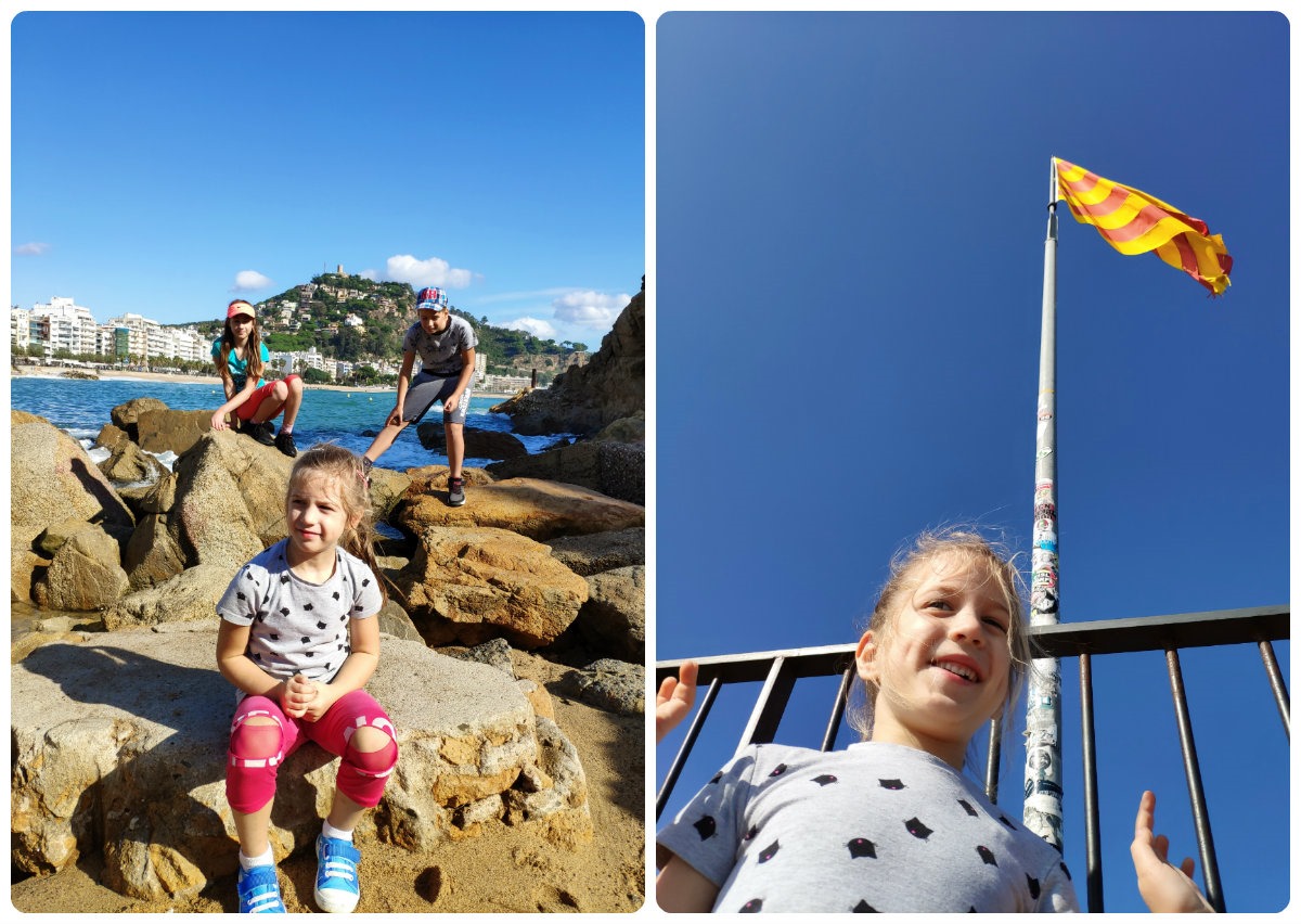 Przesychamy nieco na Portal da la Costa Brava – skale, z której rozciąga się przepiękny widok na morze. Oczywiście, nasze kozice starają się skręcić nogę, skacząc po kamieniach wokół stojącego na szczycie masztu, na którym dumnie powiewa flaga Katalonii.