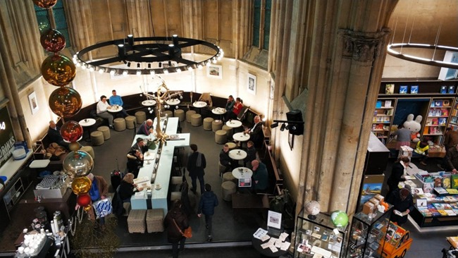Podobna Ksiegarnia znajduje sie w Zwolle, z kawiarnia miejscu bylego oltarza. Piekna ksiagarnia, bylam nia zachwycona i z przyjemnoscia wypilam w niej kawe, a jednak… mi jakos smutno, ze kosciol na ksiegarnie sie zamienia…