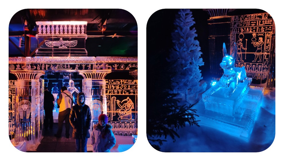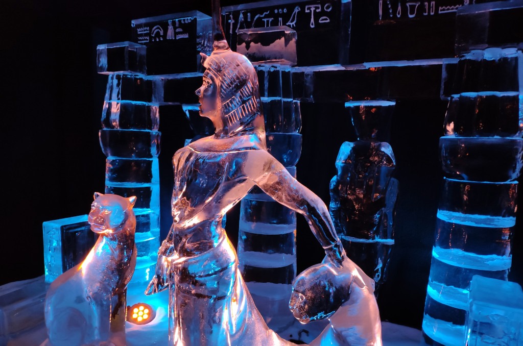 Od prehistorii przechodzimy w starożytność: przez starożytny Egipt, w którym oczy cieszą rzeźby Anubisa przedstawionego jako szakal u wejścia do lodowej świątyni.