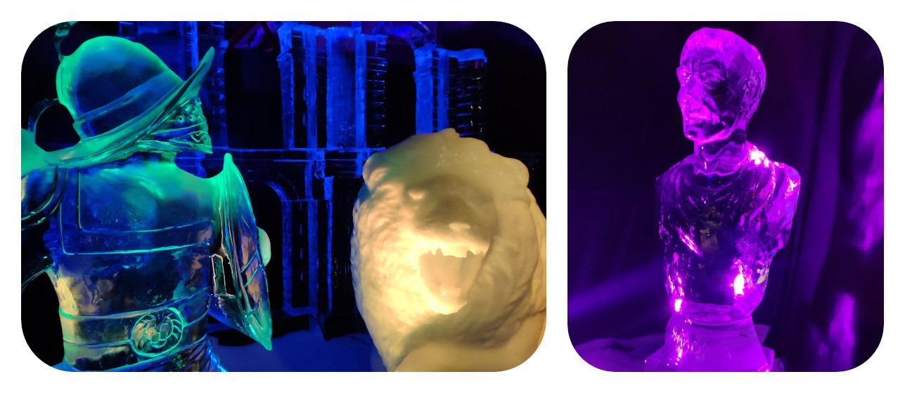 Dalej krok w przyszłość: podróże kosmiczne, obcy… Na koniec zjeżdżalnia lodowa i Scooby Doo (licho wie dlaczego). Wychodzimy przemarznięci ale zachwyceni. Trzeba przyznać, że figury naprawdę robiły wrażenie i przez ciągłą grę świateł, lód – bezbarwny przecież – mienił się w tym miejscu kolorami tęczy. Warto tu zajrzeć, jeśli trafi się okazja.
