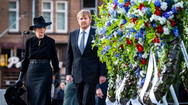 Pod pomnikiem zebrała się garstka postaci w żałobnych strojach: król Wilhelm – Aleksander, królowa Maxima, premier Mark Rutte, burmistrz Amsterdamu Femke Halsema… By zachować zalecaną odległość ustawili się w szachownicę. Reszta ludności śledziła to wydarzenie na ekranach telewizorów.