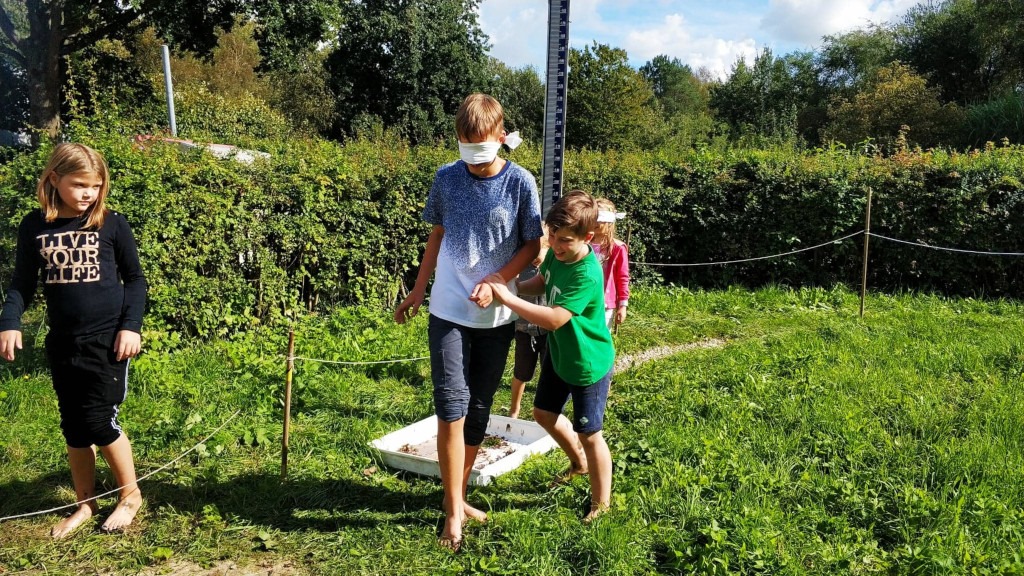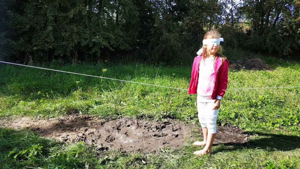 Jeden raz mało któremu dziecku wystarczał, najczęściej pokonywały trasę kilkukrotnie, nasze biegały później w tę i z powrotem już bez szarfy na oczach.