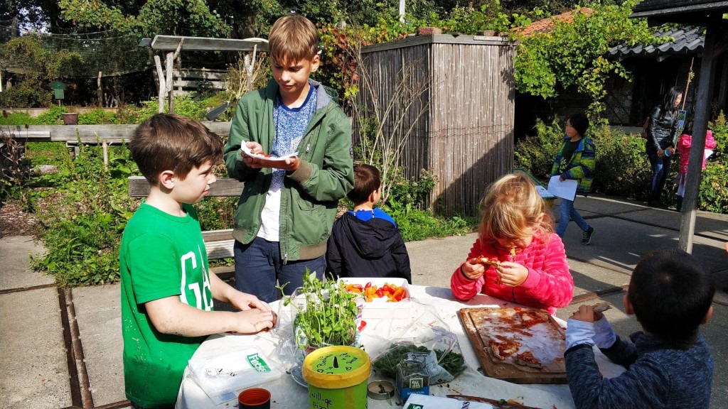 Wolontariusz pokazał nam, jak się zabrać do spróbowania kwiatów: warto odgryźć końcówkę, wyssać sok, a następnie zjeść płatki. Dzieciaki były zachwycone i zajadały się pomarańczowymi kwiatami, które według mnie smakowały jak rzeżucha.