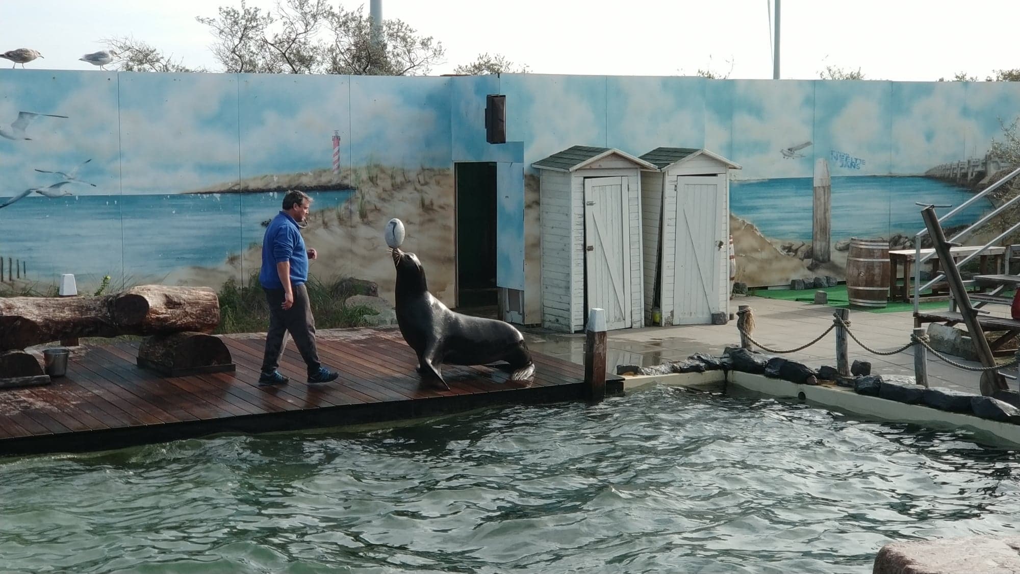 Dalej wielkie akwarium z sunącymi majestatycznie rekinami, widowisko z lwami morskimi w roli głównej.