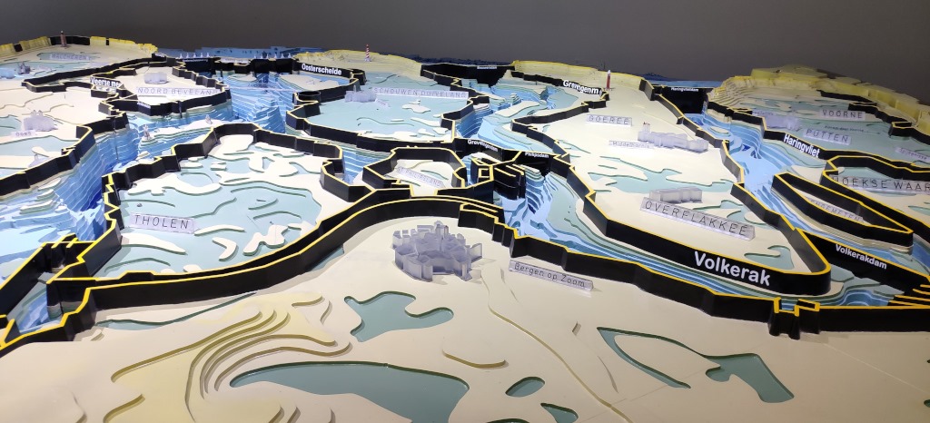 Park usytuowany jest na jednej z wysp, które połączone są linią zapór, przy pomocy których Holendrzy chronią przybrzeżne tereny przed zalaniem. Cała konstrukcja powstawała od początku lat pięćdziesiątych. Po wielkiej powodzi z 1953 roku prace przyspieszyły. Park w gruncie rzeczy przybliża zarówno tę powódź, jak i zmiany, które pośrednio wywołała. I to od przeżywania powodzi w zasadzie zaczęliśmy nasze zwiedzanie.