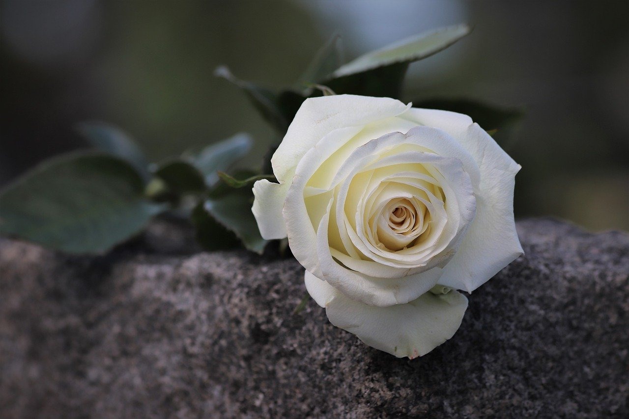 Pąsowe róże bledną, wtapiają się w biały marmur.