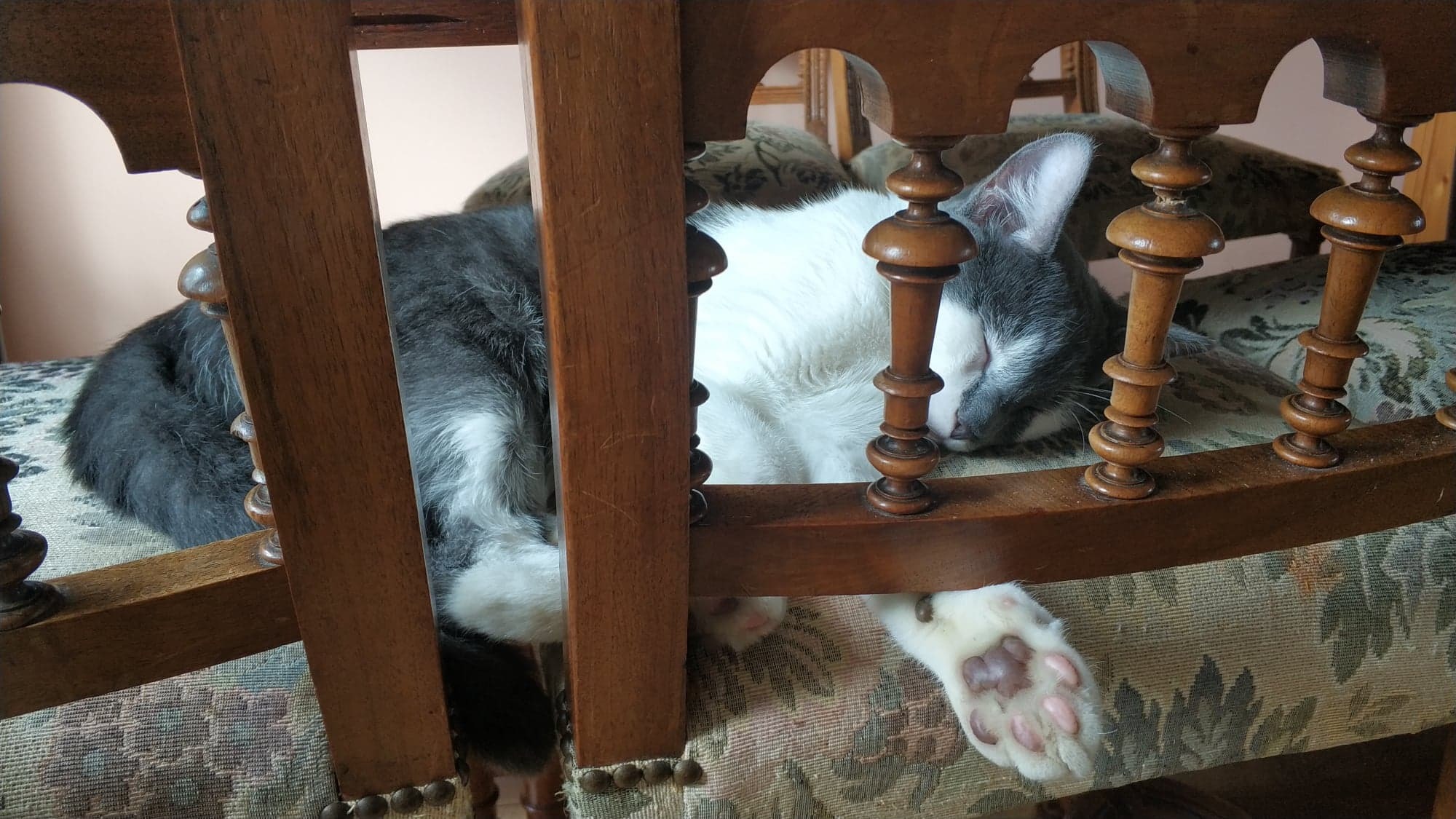 Wtedy miauczy pod drzwiami, a gdy go wpuszczamy, leci prosto do kuwety i do miski z jedzeniem. Jeszcze nie wie, że pewne kocie potrzeby może załatwić na dworze.
