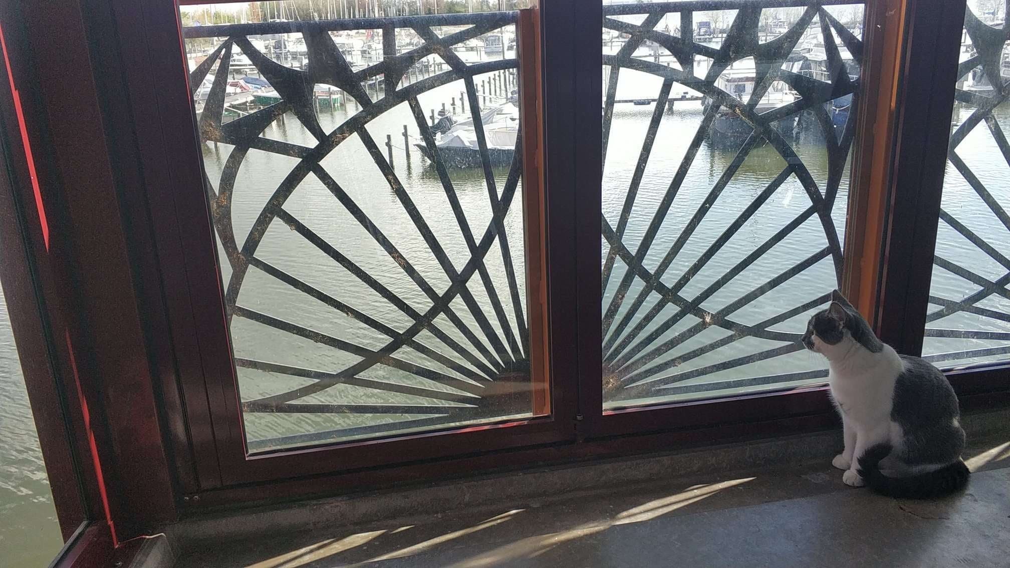 Wylegiwał się kolejno na wszystkich łóżkach, wskakiwał na parapety i obserwował przez okno żaglówki, kaczki i owady. Ale na dwór nie chciał wychodzić, odmawiał kategorycznie. Chyba bał się nowego terenu, może jeziora?