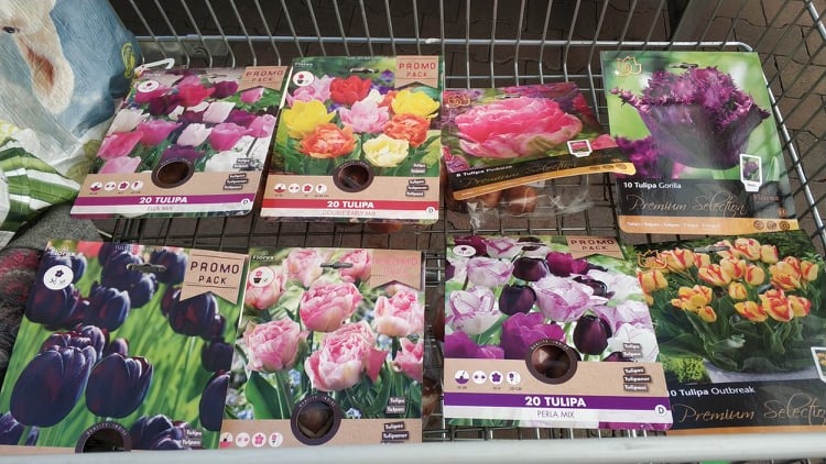 Zakupy też się udały. W centrum ogrodniczym jeszcze ostał się spory wybór cebulek tulipanów, takich fantazyjnych – dwukolorowych, z płatkami podwójnymi bądź postrzępionymi.